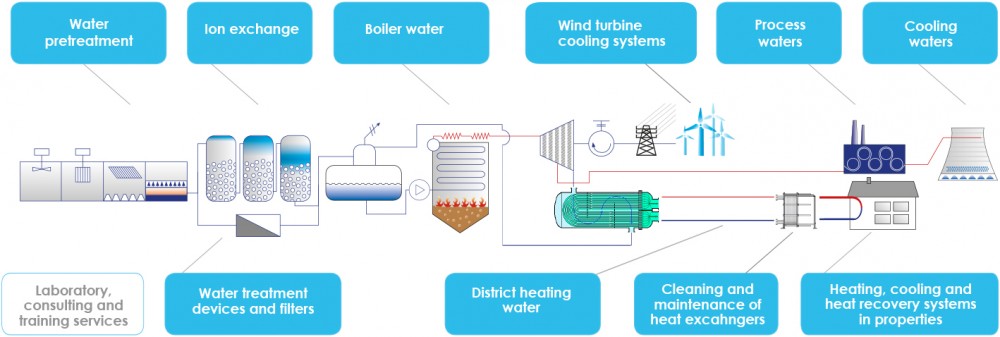 There are strict regulations for water treatment in the energy industry to ensure that power plants run economically and without interruption. Well-managed water treatment plays an important role in the preventive maintenance of power plants.